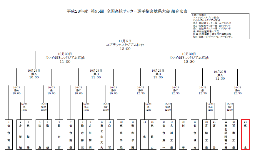 宮城県サッカー場C | ○東北 2-0 宮城工業 |