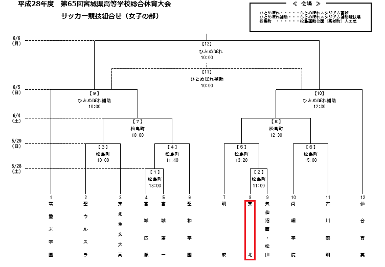 宮城県サッカー場B | ○東北 12−0 宮城第一 |
